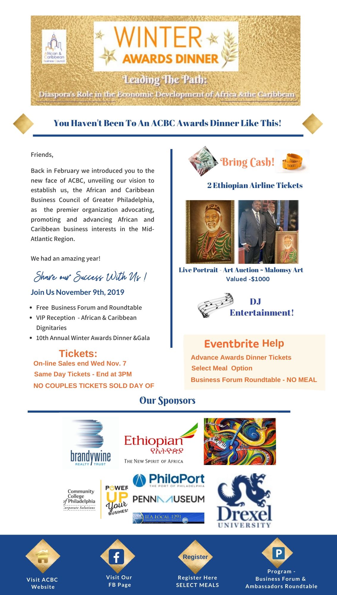 There is limited seating at the Dinner. Book your ticket now at Eventbrite. Online Ticket sales at Eventbrite end 2 days prior to the event.